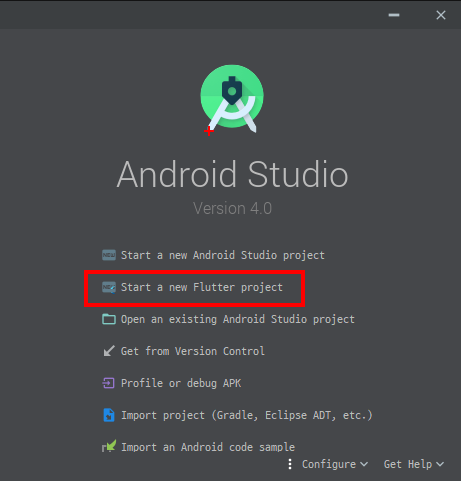 먼저 플러터 프로젝트 생성을 누릅니다.