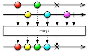 가장 단순한 결합 함수입니다. 입력 Observable의 순서와 모든 Observable이 데이터를 발행하는지 등에 관여하지 않고 어느 것이든 업스트림에서 먼저 입력되는 데이터를 그대로 발행합니다.