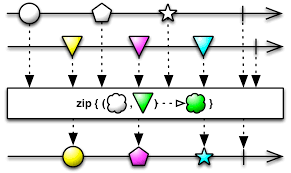 zip 함수의 특징은 각각의 Observable을 모두 활용해 2 개 혹은 그 이상의 Observable을 결합할 수 있다는 것입니다.