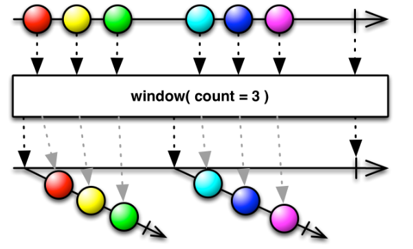 count에 3이라는 값을 받았고, 데이터 3 개가 발행될 때마다 새로운 Observable을 생성합니다.
