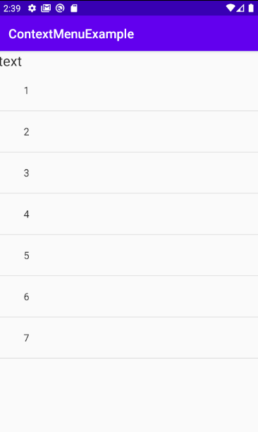 onCreateContextMenu를 통해 길게 누를 시 context menu가 보이도록 설정합니다.