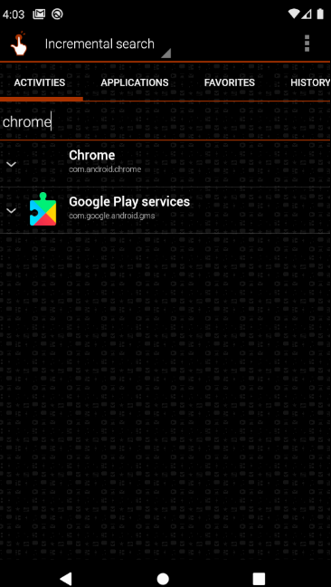 Chrome의 action name은 com.android.chrome으로 나와있습니다.