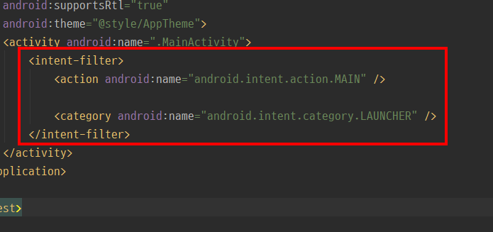 intent-filter를 통해 앱의 이름이나 카테고리를 정합니다.