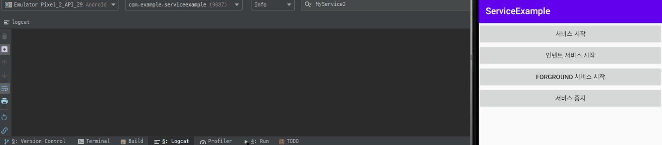 Log.i("MyService2", "서비스 실행")