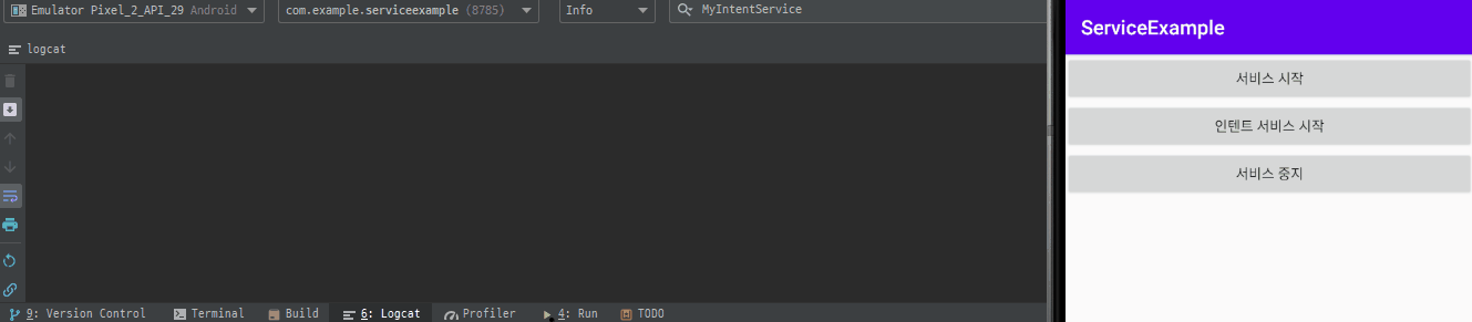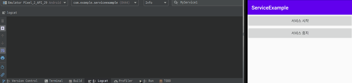 위의 예제에서는 서비스를 만들고 안에 스레드도 만들었습니다.