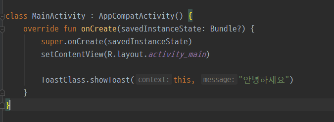 간단하게 Toast 메시지를 띄어주는 코드입니다.