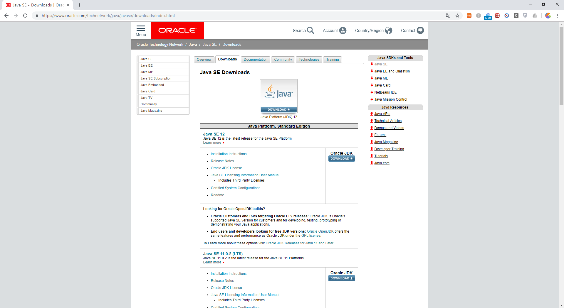 Java SE - Downloads | Oracle Technology Network | Oracle