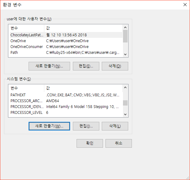 윈도우 10 기준으로 환경이라고 치면 시스템 환경 변수 편집이라고 뜹니다.
